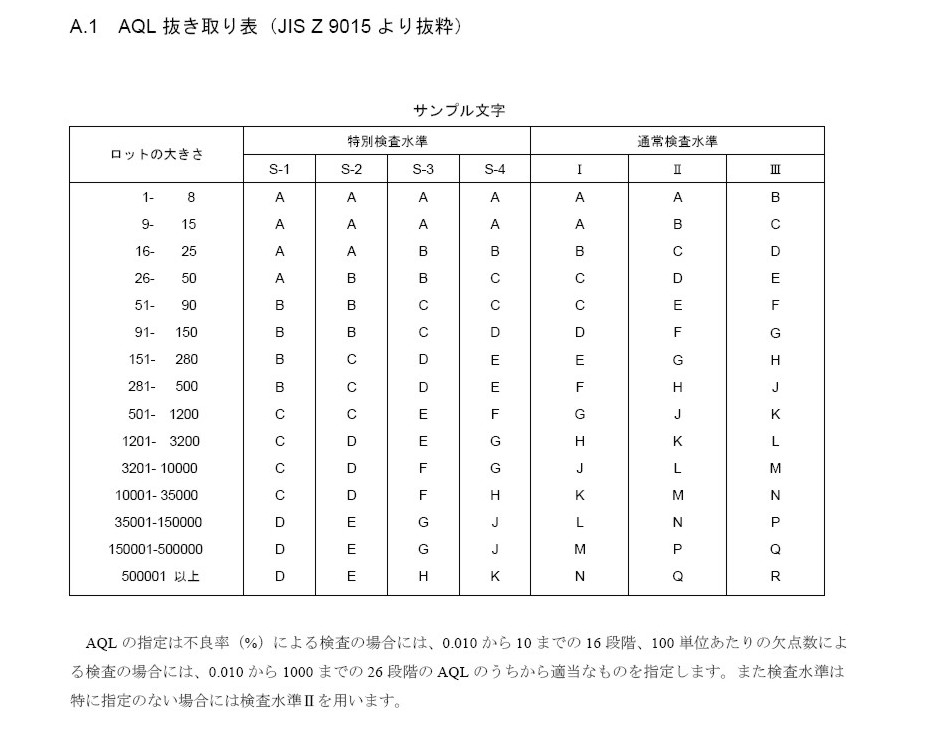 | Acceptable Quality Level also known as "AQL" or Assured Quality Level. It is a inspection standard refers to the maximum number of defective that could be considered acceptable during the random sampling of an inspection. The Defects that are found during inspection are classified into 3 levels: Critical, Major and Minor. Critical: a defect which can cause unsafe or hazardous condition for an end user using the product or that is contradicting to mandatory regulations. Major: a defect which can result in failure, reducing the marketability and usability of the product, and obvious defect of appearance which will affect the salability of the product. Minor: a defect which does not reduce the marketability and usability of the product, but is a workmanship defect beyond the defined quality standard or not as same as the approved sample. However, different importers may have different interpretation on types of defects as nature of consumer products varies. In order to avoid the arguement, the buyer and seller shall agree a AQL standard and use it as a reference during pre-shipment inspection. A sampling plan and an AQL are chosen in accordance with the risk assumed. Use of the value of AQL for certain defect or group of defects indicates that the sampling plan will accept the great majority of the lot or batch provided the process average level of percentage defective in these lot or batch be no greater than the designated value of AQL sampling plan. |