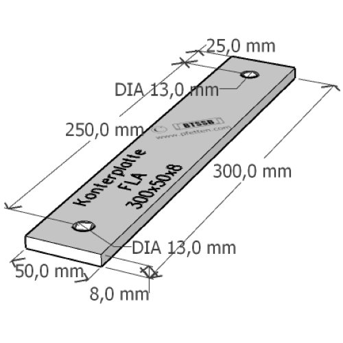 | Order-Nr.: 3907 / Bezeichnung: Konterplatte 300x50x8 Verwendungszweck: Konterplatte 300x50x8, 0,94 kg/Stck. |