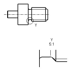 In der Regel wird ein Gewindefreistich in der Hauptansicht der Zeichnung