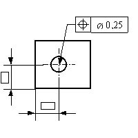 Der tatsächliche Bohrungsmittelpunkt muss in einem Kreis mit d=0,25 mm liegen, dessen Mittelpunkt mit dem theoretisch exakten Ort der Bohrung übereinstimmt. |