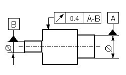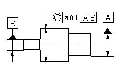 Die Achse des tolerierten Wellenteils muss in einem zur Bezugsachse A-B koaxialen Zylinder mit d=0,1 mm liegen. |