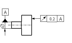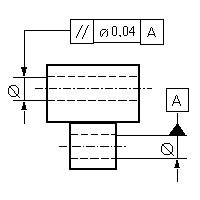 Die tolerierte Achse muss in einem Zylinder von d=0,04 mm liegen, der parallel zur Bezugsachse A ist. |