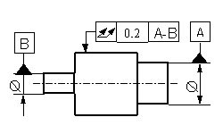 Bei mehrfacher Drehung um die Bezugsachse A-B und gleichzeitiger axialer Verschiebung, müssen alle Messpunkte der Oberfläche in der Gesamtrundlauftoleranz 0,2 mm liegen. |