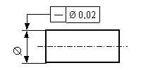 Die tolerierte Achse des zylindrischen Teils muss in einem Zylinder von d=0,02 mm liegen. |