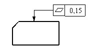 Die tolerierte Fläche muss zwischen zwei parallelen Ebenen (Abstand 0,15 mm) liegen. |