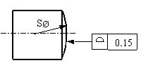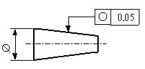 In allen Schnittebenen senkrecht zur Mittelachse muss die Umfangslinie zw. zwei konzentrischen Kreisen (Abstand 0,05 mm) liegen. |