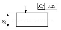 Die tolerierte Mantelfläche des zylindrischen Teils muss zw. zwei koaxialen Zylindern (Abstand 0,25 mm) liegen. |
