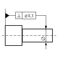 Die tolerierte Zylinderachse muss in einem zur Bezugsfläche senkrechten Zylinder mit Durchmesser d=0,3 mm liegen. |